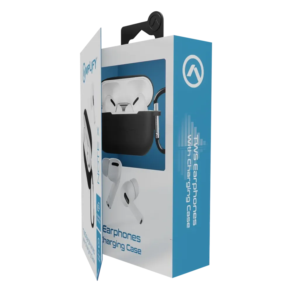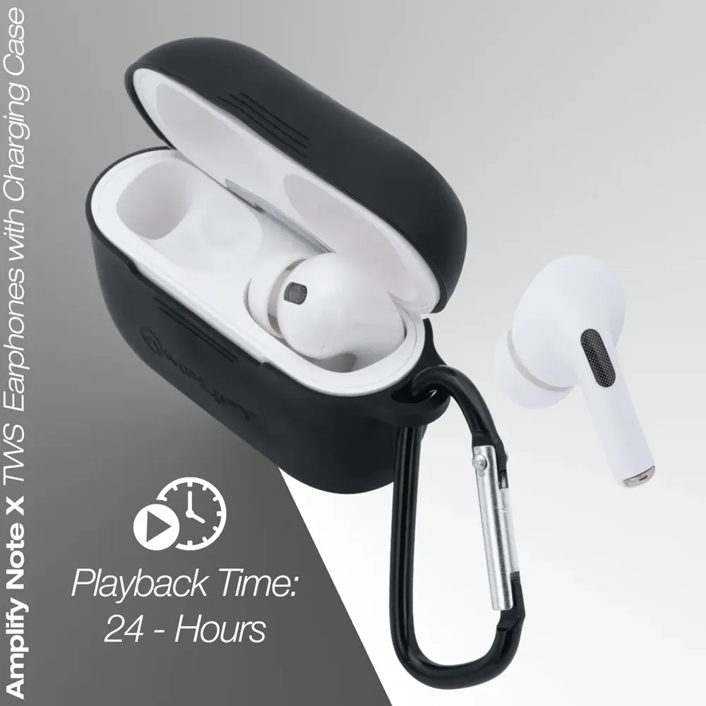 Amplify Note X Series TWS Earphones + Charging Case – White Case + Black Cover