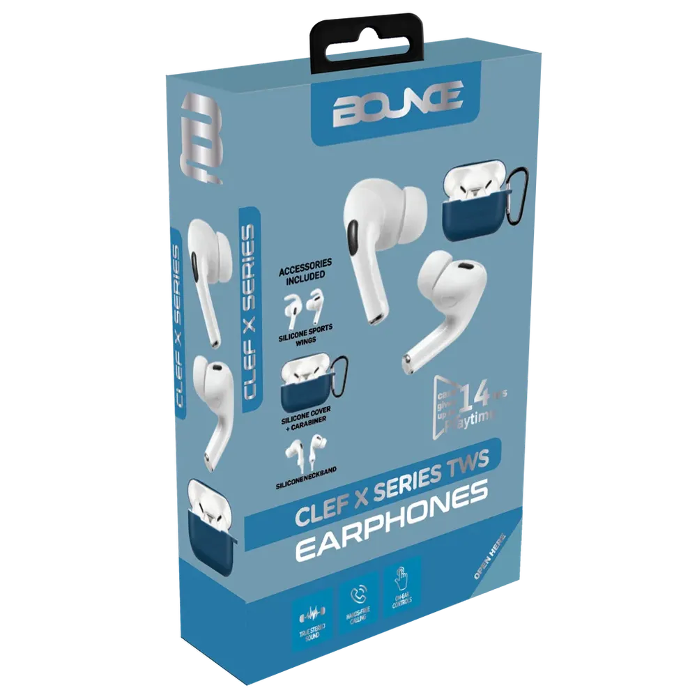 Bounce Clef X True Wireless Earphones + Case + Silicone Accessories – Blue