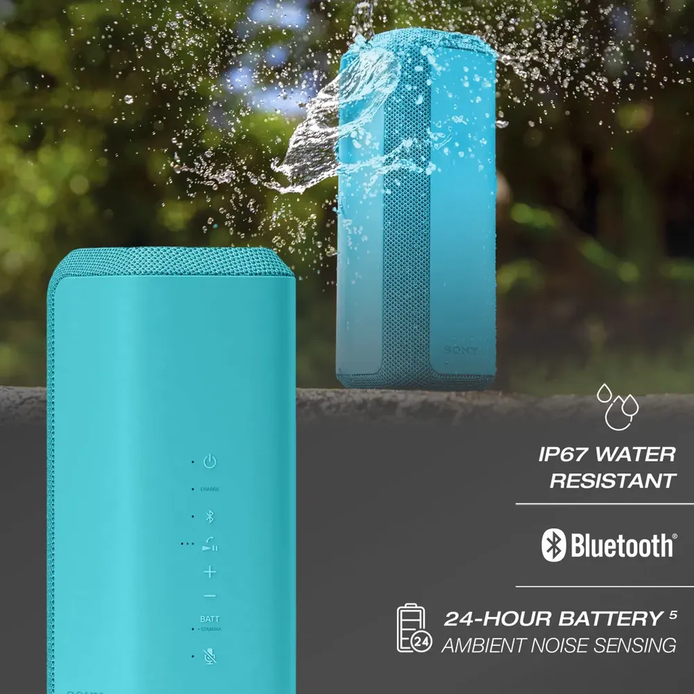 Spread powerful sound anywhere you go and anywhere you are with the XE300 Wireless Speaker. With IP67 Water resistance, dustproof and shockproof design, this speaker is designed to thrive in any environment. With all day battery life and an impressive line shape diffuser this speaker ensures everyone at the party hears uncompromised sound quality throughout the room. Features: Line Shape Diffuser: Sony’s unique Line-Shape Diffuser creates line source and distributes the sound evenly, across a wide sound front, to better fill your space with audio. This spreads high-quality sound further and wider around your party, without compromising on sound quality. Ambient Noise Sensing: Helps save battery life when used outside as it automatically monitors the background noise levels of an area and adjusts the volume accordingly. IP67 Water and Dust Proof: The XE300 is waterproof, so you’ll have no worries by the sea or the pool side. Additionally, with an IP67 rating, your speaker is sealed against dust, so you can use it on any surface, wherever you take it. X-Balanced Speaker Unit: Unlike the circular diaphragm in a conventional speaker unit, the newly developed X-Balanced Speaker Unit in the XE300 features a non-circular diaphragm which realizes more sound pressure for a high-quality sound. Play all day on a single charge and get Battery Care protection: Keep the party going with up to 24-hours of battery life on a single charge, and USB-C quick charging gives you up to 70 minutes of playback after just 10 minutes of charge time. Connect wirelessly via BLUETOOTH technology: With Google fast pairing the Sony SRS-XE300 enables quick effortless Bluetooth pairing with your devices. A crisp microphone paired with Echo Cancelling technology: With Echo Cancelling technology, the XE300 allows for more natural conversations during online meetings by having two people talk at the same time without cutting either one off. Party Connect: With the Party Connect feature, you can combine up to 100 compatible wireless speakers with BLUETOOTH technology and sync your music so everyone dances to the same beat. Or with Stereo Pair you can connect two speakers wirelessly for an epic stereo sound. Don t miss a minute with Fast Pair: Just one quick tap and the Sony XE300 pairs with your device. Sony | Music Center: Optimize audio settings, select playlist, cue the next Sony, and control Party Connect. USB-C Charging: Use a USB Type-C cable to charge the XE300. What’s in the box 1 x Sony SRS-XE300 Portable Bluetooth IP67 Speaker 1 x USB C Cable 1 x Warranty Card 1 x Manual