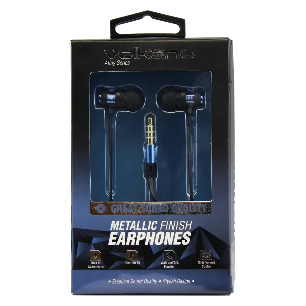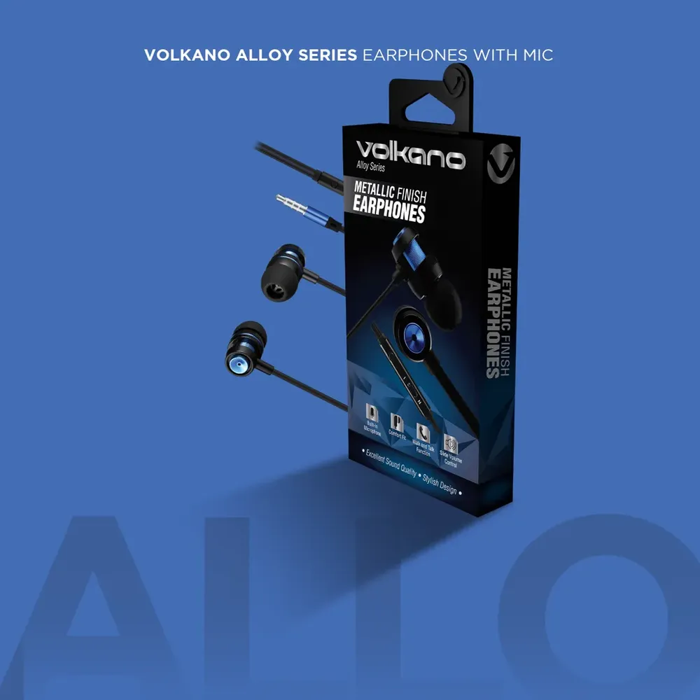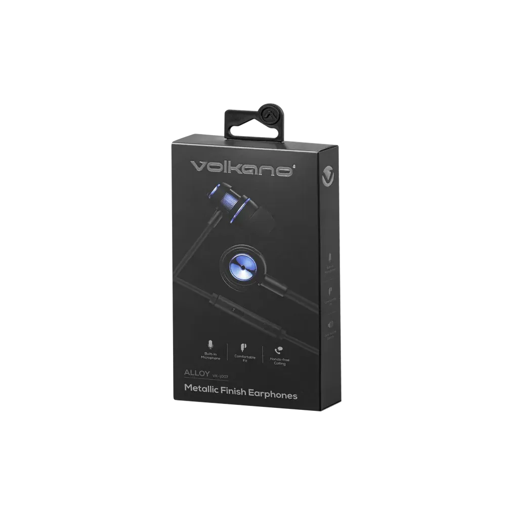 Experience superior audio performance and modern style with the Volkano Alloy Series Metal Earphones. These sleek earphones boast a metallic finish for a contemporary look, while delivering sharp, detailed audio quality that enhances your listening experience. Equipped with an innovative slider volume control, built-in microphone for hands-free calls, and a comfortable ergonomic fit, these earphones offer convenience and comfort for your everyday use. Elevate your audio experience with the Volkano Alloy Series Metal Earphones, combining style, comfort, and superior sound quality in one sleek package.