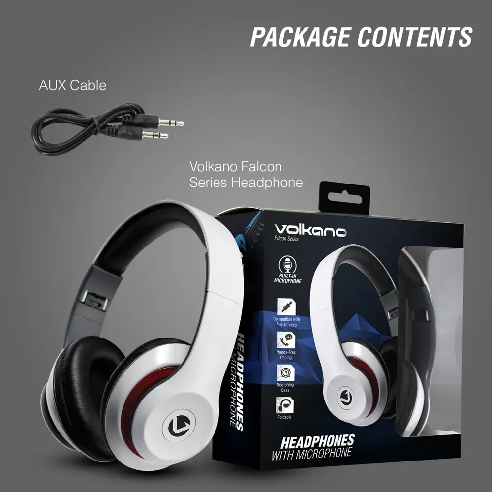 The Volkano Falcon Series Headphones – your ticket to immersive audio experiences! Immerse yourself in scorching sound with the Volkano Headphones with Mic Falcon Series! Whether you’re rocking out to your favorite tunes or taking calls, the 40mm drivers ensure top-notch audio quality. Compatible with various devices, the sleek design, super-soft earcups, and adjustable headband offer a stylish and comfortable experience. Plus, the 1.2m cable with a microphone provides convenience on the go. Elevate your listening experience with Volkano Falcon – where style meets superior sound. Specifications: Driver Size: 40 mm Frequency: 20 Hz – 20 kHz Impedance: 32 Sensitivity: 94 dB 3 dB Cable: 1.2 m/4 ft What’s in the box 1 x Falcon Series Headphones